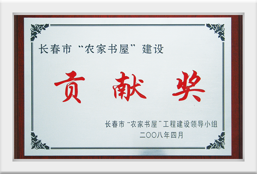 2008年4月長(zhǎng)春市“農(nóng)家書(shū)屋”建設(shè)貢獻(xiàn)獎(jiǎng)