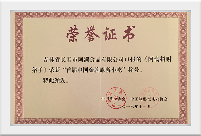 2016年11月榮獲“首屆中國(guó)金牌旅游小吃“稱號(hào)