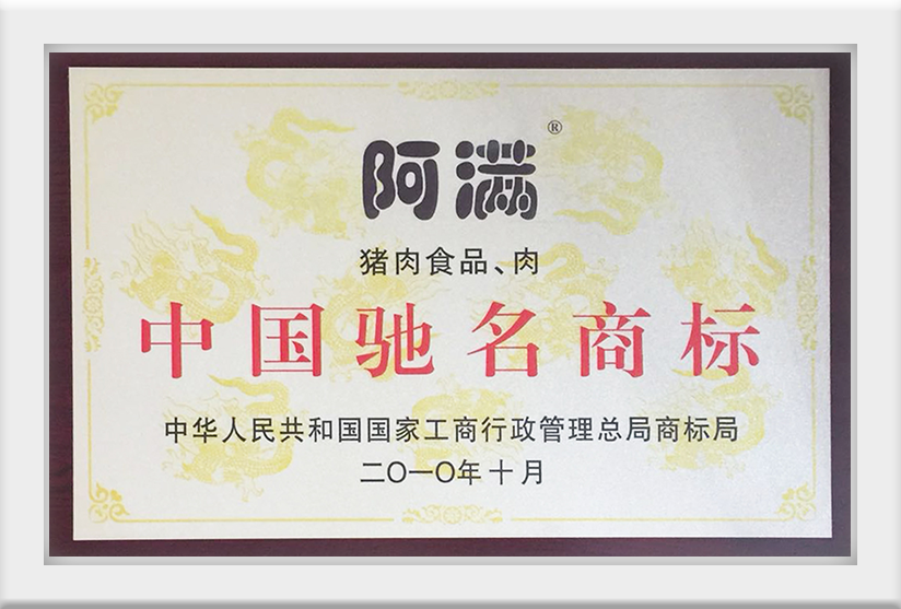 2010年10月豬肉食品、肉中國(guó)馳名商標(biāo)