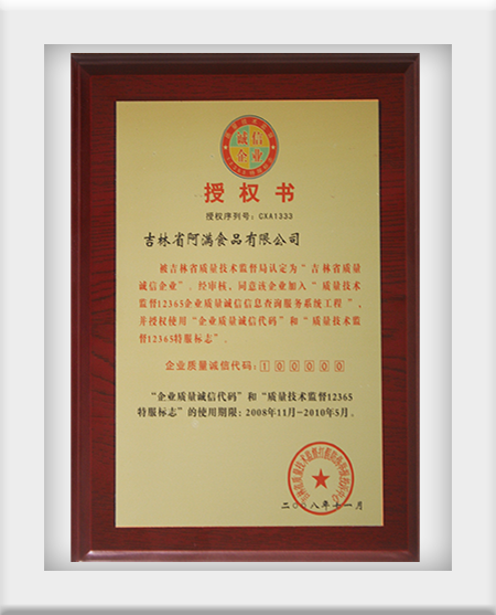 2007年12月獲得吉林省質(zhì)量誠(chéng)信企業(yè)