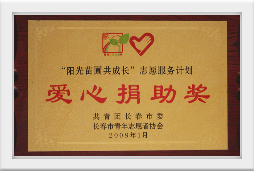 2008年1月獲得“陽(yáng)光苗圃共成長(zhǎng)”志愿服務(wù)計(jì)劃愛(ài)心捐助獎(jiǎng)